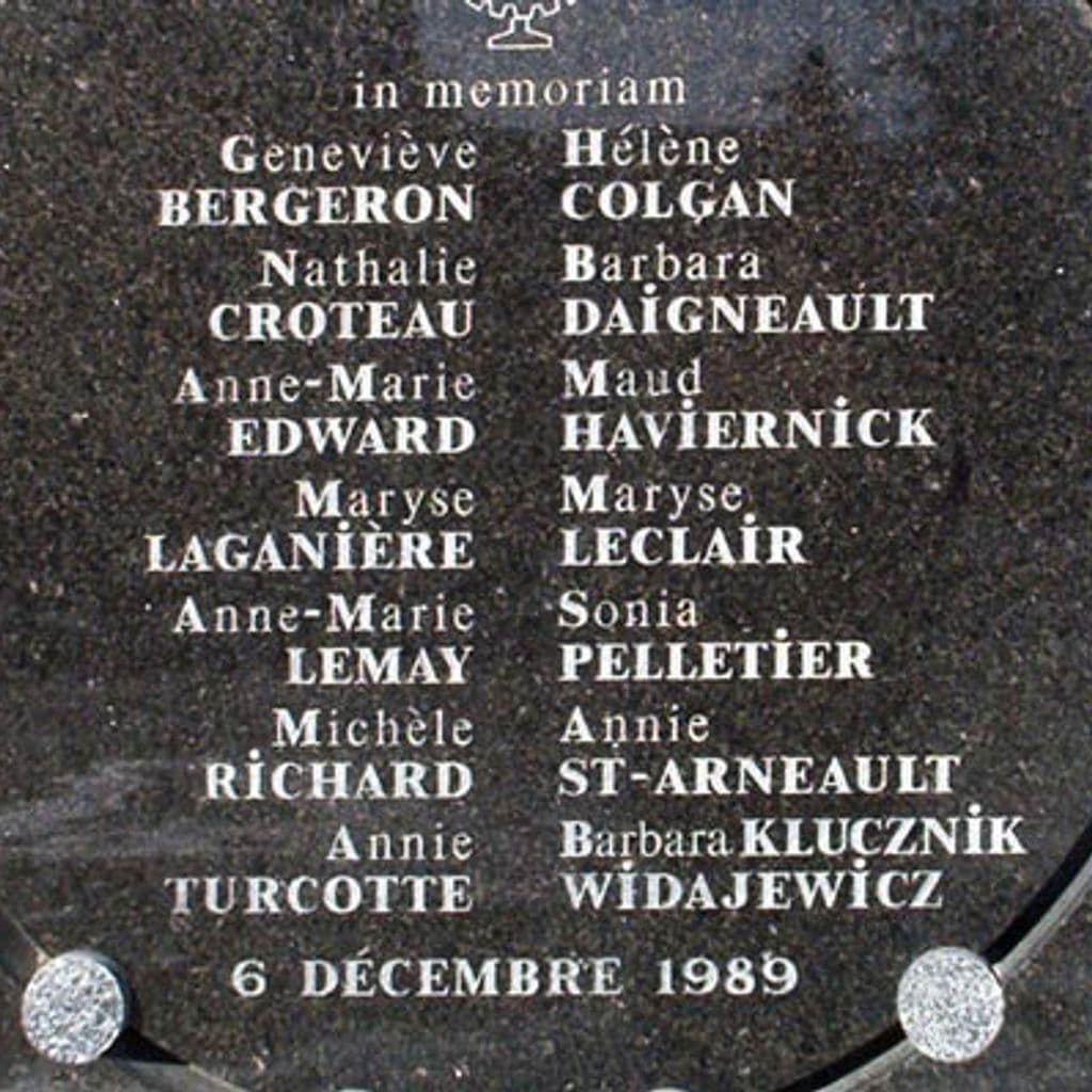 On 6 December 1989, a young man, 25-year-old Marc Lépine entered a college classroom at the The École Polytechnique, Montréal, Canada, carrying a gun. He separated the male and female students and claiming that he was “fighting feminism”, shot all nine women in the room, killing six. He then moved through corridors, the cafeteria, and another classroom, specifically targeting women to shoot. Overall, he killed fourteen women and injured ten other women and four men in just under twenty minutes before turning the gun on himself…